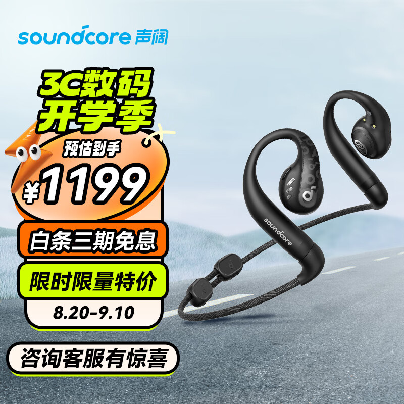 声阔飞跃线2合1不入耳蓝牙耳机AeroFit Pro开放舒适音质颠覆骨传导无线运动跑步适用苹果华为手机黑价格:1199.00元!