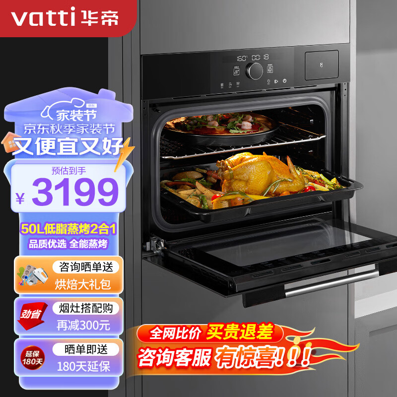 华帝(VATTI)蒸烤箱一体机嵌入式 蒸箱烤箱家用 50L大容量 智能app预约 搪瓷内胆 JYQ50-i23011价格:3399.00元!