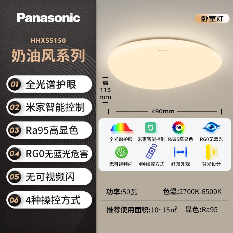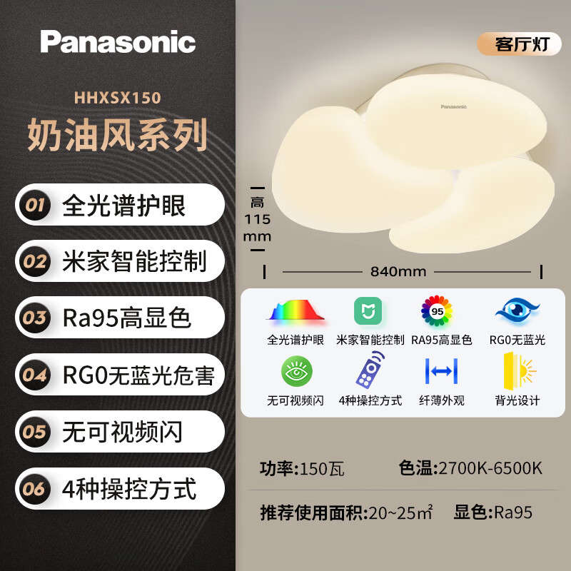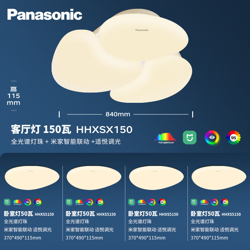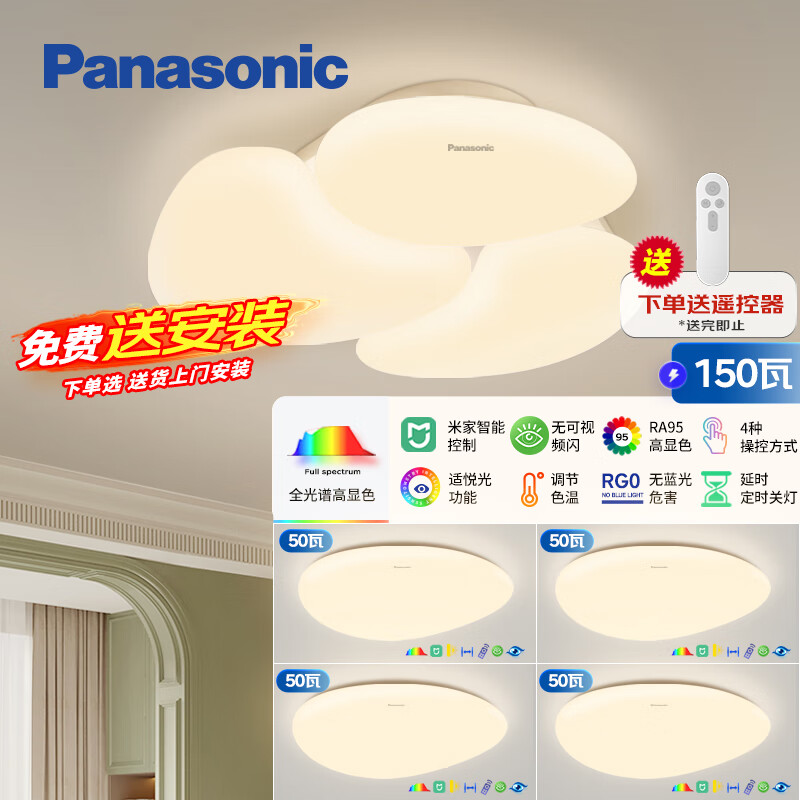 松下(Panasonic)吸顶灯全光谱护眼全屋米家智能现代简约灯具奶油风四室一厅套装价格:3999.00元!