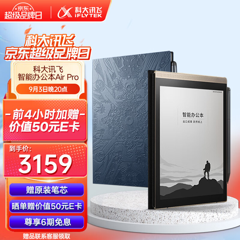 科大讯飞智能办公本Air Pro 7.8英寸电子书阅读器 墨水屏电纸书电子笔记本语音转文字 星光金+深纹蓝保护套价格:3159.00元!