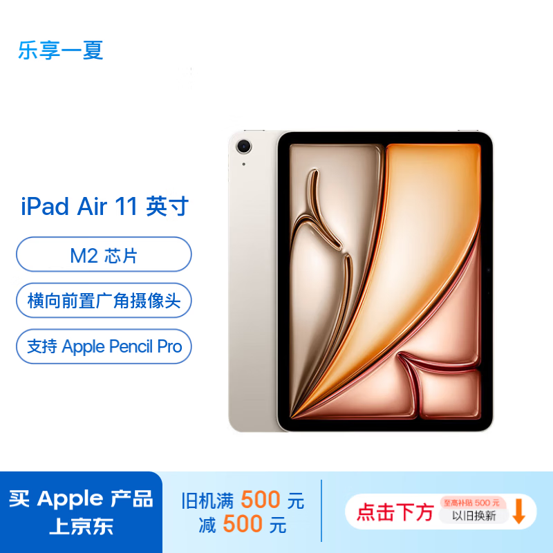 Apple/苹果 iPad Air 11英寸 M2芯片 2024年新款平板电脑(Air6/256G WLAN版/MUWJ3CH/A)星光色价格:5599.00元!