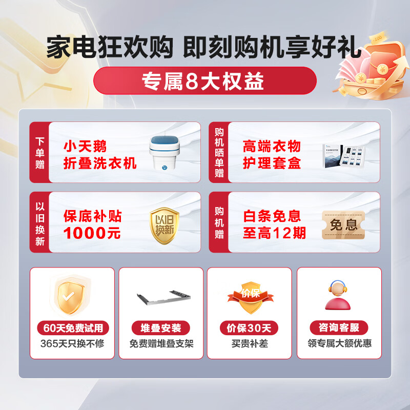 5、很不错的一款产品既满足了超薄,又满足了洗烘一体,还有羊毛绿标,做了很久的选择才选择了这一款。价格也非常的优惠,小天鹅的品控也好。